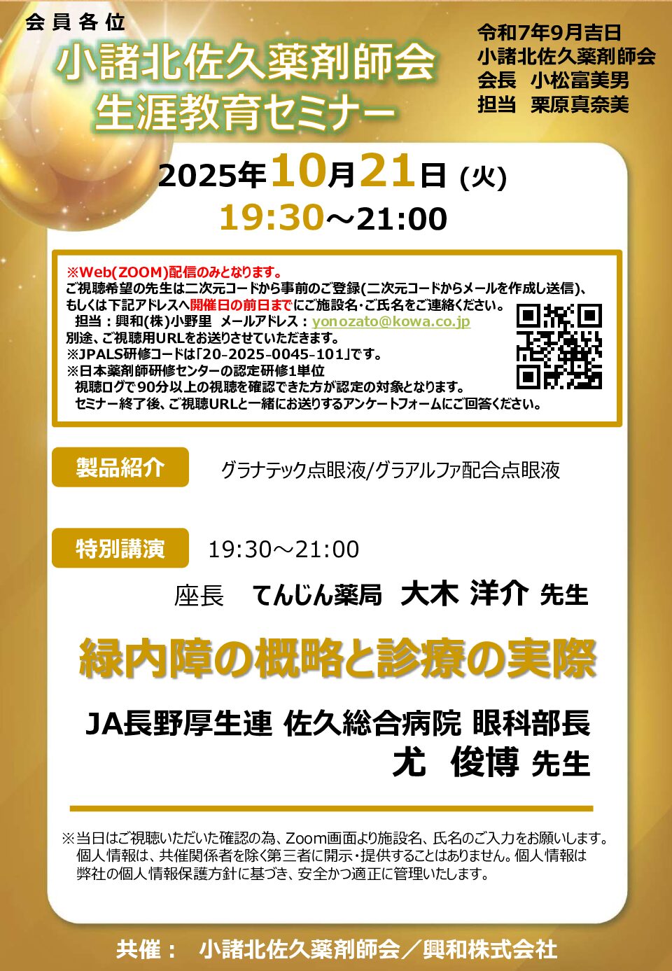 2025年10月21日(火)小諸北佐久薬剤師会生涯教育セミナーのご案内(WEB配信のみ)